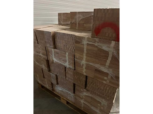 Nuevo estado. Elemento de parquet industrial de madera maciza de haya. Las piezas están pegadas con cinta adhesiva, como se muestra en la imagen. El tamaño de una pieza pegada es 250x200x22mm. Este paquete contiene 800 piezas así, que cubren 40 m2. |