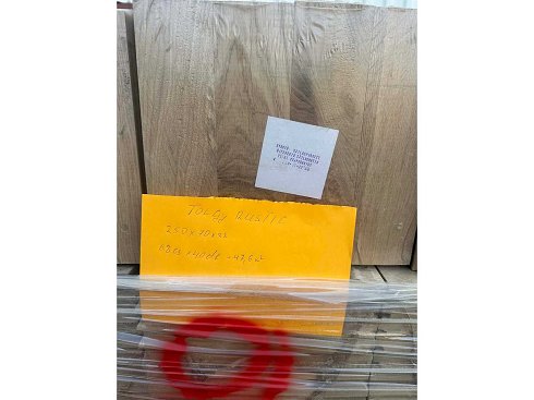 Nuevo estado. Parqué de madera maciza de roble con superficie rústica. El tamaño de una pieza es 250x70x22mm. El paquete completo cubre 47,6 m2. |