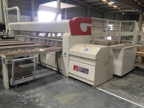 - Potencia total instalada 38 KW. - Ancho de corte 4500 mm. - Profundidad de corte aprox. 4500 mm. - Saliente de la hoja de sierra aprox. 115 mm. - 6 Pinzas. - Disco principal: max. diámetro 430 mm, motor 11 KW. - Disco incisor: max. diámetro 215 mm, motor 2.20 KW. - Velocidad de avance del carro: 1 - 170 m/min. - Velocidad del carro en retorno: 170 m/min. - Velocidad de avance de los empujadores: 1 - 90 m/min. - Velocidad de retorno de los empujadores: 90 m/min. - 5 mesas de aire frontales. - Dimensiones máximas de tableros sobre la mesa elevadora aprox. 4500 x 2200 mm. - Altura máxima de la pila de tableros sobre la mesa elevadora aprox. 0700 mm. - Se incluyen rodillos de carga laterales hacia la mesa elevadora. - Control G-DRIVE RT. - Condiciones de funcionamiento de esta máquina: sin comprobar. - Este artículo se entrega cargado sobre camión. Los costes de desmontaje y carga son los que se especifican como costes adicionales.