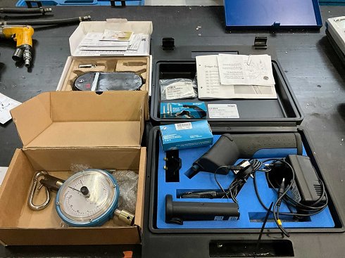 incluyendo 1 indicador de flujo de aire Dräger Flow Check en una carcasa de plástico; 1x dinamómetro de escala colgante analógica kg; escala de precisión 1x; |