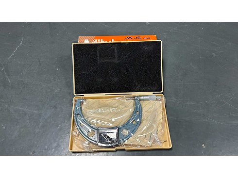 Mitutoyo Micrometer 125–150 mm Estado: Nuevo rango: 125–150 mm • Precisión: 0,01 mm • Estándar: 20°C, 0 ¿m • Cuña de calibración incluida • Vaina rígida Mitutoyo.