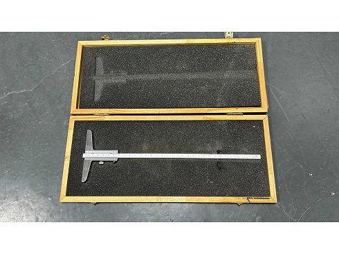 Pinza de profundidad analógica Roch France Estado: Rango desconocido : 0–250 mm • Resolución: 0,02 mm • Lectura de vernier • Material: acero inoxidable • Carcasa de madera con espuma.