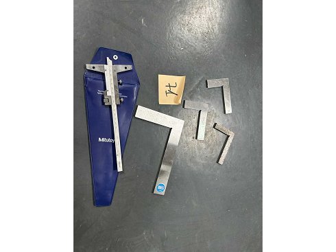 Lote nº 71 – Pie de profundidad Mitutoyo + 4 soportes de control Condición: Uso de calibrador de profundidad Mitutoyo precisión 0,02 mm • Acero negro • Caja rígida • 4 soportes de control de acero, uno de los cuales está certificado FMC² • Control geométrico y de ortogonalidad.