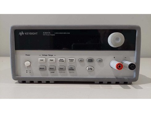 Fabricante: Keysight Technologies Modelo nº: E3641A Tipo: Fuente de alimentación de CC (fuente de alimentación de laboratorio) Datos técnicos (según el panel frontal): Voltaje de salida: 0-8 V / 0-8 A o 0-60 V / 0-0,5 A (rangos conmutables) Potencia de salida: aprox. 80 W Funcionamiento: Botones para rango de voltaje (bajo/alto), protección contra sobrecorriente, opciones de pantalla Pomo para un ajuste fino Conexiones: Latas de plátano delanteras (+ / –) Características especiales: Compacto, ideal para laboratorio y servicio Alta precisión y estabilidad El número de serie puede variar