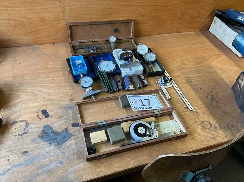 Calibres de esfera (6x) Medidor digital de dial Transportador (3x) Placas medidoras (7x) Calibradores de palpadores (7x)