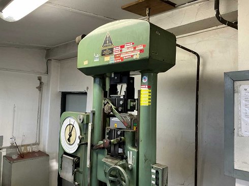 máquina universal de ensayo de materiales WPM (Werkstoffprüfmaschinen), diseñada principalmente para ensayos de tracción de materiales. La máquina cuenta con una construcción mecánica de alta resistencia y fue fabricada en la antigua Alemania Oriental. Se utilizaba típicamente en entornos industriales y de laboratorio. ¿ Detalles técnicos: Tipo: máquina universal de tracción / ensayo Fabricante: WPM (Werkstoffprüfmaschinen) Fuerza máxima de prueba: 50 kN (aprox. 5 toneladas) Medición de fuerza: indicador mecánico de esfera Sistema de accionamiento: electromecánico Motor eléctrico: VEB Sachsenwerk Radeberg Voltaje: 220 / 380 V, 50 Hz Agarre de especímen: empuñaduras en cuña (para especímenes planos) Medición de alargamiento: escala mecánica Operación: volante manual y mecanismo de palanca