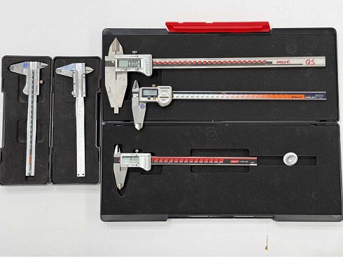 Un total de 5 piezas: 3 digitales, 2 analógicas de diferentes marcas y longitudes de medición