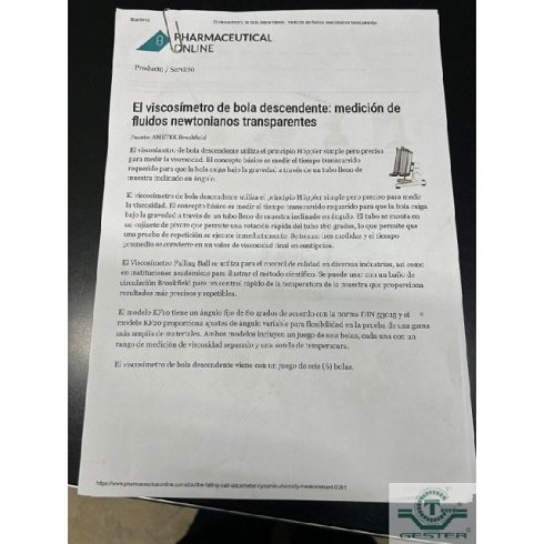 | Detalles | Viscosímetro de bola descendente para medición de fluidos. |