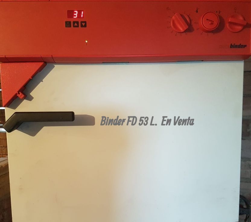 | Detalles | Estufa de secado Binder Modelo: FD 53 L. convencional natural con cámara de acero inoxidable.