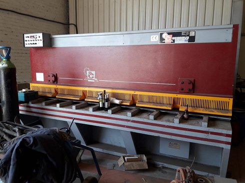 | Detalles | Cizalla Casanova 3000x20mm Cizalla hidráulica Casanova de 3.000x20mm La cizalla hidráulica Casanova es una máquina de corte vertical que consigue una mayor calidad de corte, cuchillas de 4 filos y regulación del ángulo de corte para adecuarse a cadamaterial. Está diseñada para minimizar el mantenimiento, pues el contacto entre cuchillas es mínimo y las guías son templadas con rodamiento de agujas. La máquina está equipada con tope retráctil y está construida en bastidor monobloc indeformable (chapa de acero electrosoldada y estabilizada).Características técnicas: Espesor máximo de corte (hierro): 20mm Espesor máximo de corte (inox): 14mm Longitud total de corte: 3.100mm Potencia motor: 40cv Ángulo de corte: 1-3º Número de cortes por minuto: 6-16 Longitud total: 3.700mm Anchura total: 2.200mm Altura total: 2.000mm Altura de trabajo: 800mm Cuello de cisne: 500 mm Recorrido de tope posterior: 1.000mm Peso aproximado: 12tConfiguración de la máquina:
