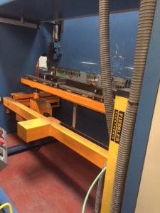 Tope trasero: El tope trasero de la plegadora PPE-CNC está controlado desde el CNC y gestiona los ejes X y R automáticamente. Monta dos torretas deslizantes a derecha e izquierda,con topes escamoteables y cortinas Fiesseler de seguridad. Tope trasero de plegadora Ferry PPE CNC
