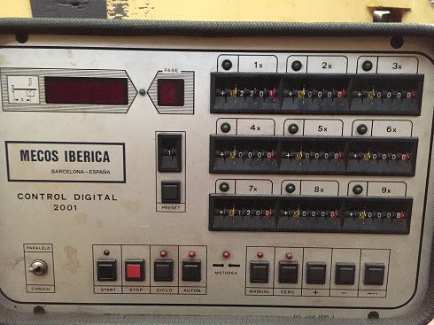 Otros detalles: Robusta estructura de acero electrosoldado. Cuello de cisne de 300mm. Tope trasero controlado por CNC Mecos 1 eje: CNC MECOS 2001 controla 1 eje (X) |