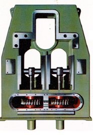 Características técnicas: Longitud de curvado: 2.550mm Capacidad de precurvado: 40mm Capidad de curvado: 50mm Diámetro de rodillos: 530mm Potencia motor: 70cv Velocidad de curvado: 4m/min Peso aproximado: 38.500kgs. Configuración de la máquina Precisión en el curvadoDebido a la disposición piramidal de los ejes y a que los ejes inferiores son ajustables y motrices, lo que permite realizar precurvados en ambos extremos sin tener que invertir las chapas. Robusta construcción: Perfiles y chapón electrosoldado nivelado por tornillos para un montaje perfecto.Montantes formados de chapa soldados y normalizados.Soportes de rodillos inferiores sobre guias verticales e inclinables sobre el bulon del husillo de presion para la inclinación de los rodillos.Dos mecanismos de corona sin-fin montados en la parte inferior y rodamiento axial para ascenso y descenso de los rodillos inferiores, todo en baño de aceite.En el montante exterior se coloca el soporte abatible del rodillo superior para sacar las chapas curvadas. Accionamiento: Motor reversible de anillos rozantes a traves de un acoplamiento elastico en el que se monta un freno turbo-hidraulico para evitar el deslizamiento de la chapa y que mueve la caja reductora principal.Todos los engranajes son de acero. Ruedas y piñones de acero especial y de dientes angulares.Dos fuertes ejes articulados, tipo cardan de transmision para hacer girar a los rodillos inferiores y al mismo tiempo absorber las diferencias de alturas que estos admiten en su movimiento vertical.Engrase de reductora por balboteo y ejes superiores por medio de bomba situada en el interior de la reductora. Cilindros de acero al carbono f-114 (forjado): Cilindro superior sin accionamineto, apoyado en cojinetes de bronce.Ciindros inferiores motrices desplazables verticalmente e inclinables. Apoyados sobre cojinetes de bronce y controlados por el operario mediante relojes de cota grabados. Dispositivo de seguridad: Para evitar un exceso de presión de los rodillos inferiores sobre el superior, incorpora en el interior de la reductora de elevación y descenso un dispositivo de seguridad por cada rodillo: sistema de cizallamiento por presión. Ajuste de rodillos: Mediante dos motores con mando independiente para cada rodillo y que actua sobre la caja reductora de elevacion y descenso de los rodillos inferiores, construida en chapa soldada y normalizada, toda ella estanca y en baño de aceite continuo. Los piñones y engranajes son de dientes helicoidales. Equipo eléctrico: Todos los motores y aparellaje son de las mejores marcas del mercado.Motores controlados por contactores y protegidos con relés térmicos. Pupitre de mandos: Desplazable a ambos lado de la maquina para facilitar el curvado inicial de los dos extremos de la chapa.Indica las potencias absorbidas por los tres motores principales, y permite su accionamiento independiente.Visualizador del nivel de aceite de las reductoras controlado mediante bomba de engrase centralizado, que asegura la lubrificación de las partes mas importantes de la máquina.