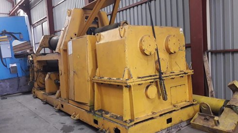 Características técnicas: Longitud de curvado: 2.550mm Capacidad de precurvado: 40mm Capidad de curvado: 50mm Diámetro de rodillos: 530mm Potencia motor: 70cv Velocidad de curvado: 4m/min Peso aproximado: 38.500kgs. Configuración de la máquina Precisión en el curvadoDebido a la disposición piramidal de los ejes y a que los ejes inferiores son ajustables y motrices, lo que permite realizar precurvados en ambos extremos sin tener que invertir las chapas. Robusta construcción: Perfiles y chapón electrosoldado nivelado por tornillos para un montaje perfecto.Montantes formados de chapa soldados y normalizados.Soportes de rodillos inferiores sobre guias verticales e inclinables sobre el bulon del husillo de presion para la inclinación de los rodillos.Dos mecanismos de corona sin-fin montados en la parte inferior y rodamiento axial para ascenso y descenso de los rodillos inferiores, todo en baño de aceite.En el montante exterior se coloca el soporte abatible del rodillo superior para sacar las chapas curvadas. Accionamiento: Motor reversible de anillos rozantes a traves de un acoplamiento elastico en el que se monta un freno turbo-hidraulico para evitar el deslizamiento de la chapa y que mueve la caja reductora principal.Todos los engranajes son de acero. Ruedas y piñones de acero especial y de dientes angulares.Dos fuertes ejes articulados, tipo cardan de transmision para hacer girar a los rodillos inferiores y al mismo tiempo absorber las diferencias de alturas que estos admiten en su movimiento vertical.Engrase de reductora por balboteo y ejes superiores por medio de bomba situada en el interior de la reductora. Cilindros de acero al carbono f-114 (forjado): Cilindro superior sin accionamineto, apoyado en cojinetes de bronce.Ciindros inferiores motrices desplazables verticalmente e inclinables. Apoyados sobre cojinetes de bronce y controlados por el operario mediante relojes de cota grabados. Dispositivo de seguridad: Para evitar un exceso de presión de los rodillos inferiores sobre el superior, incorpora en el interior de la reductora de elevación y descenso un dispositivo de seguridad por cada rodillo: sistema de cizallamiento por presión. Ajuste de rodillos: Mediante dos motores con mando independiente para cada rodillo y que actua sobre la caja reductora de elevacion y descenso de los rodillos inferiores, construida en chapa soldada y normalizada, toda ella estanca y en baño de aceite continuo. Los piñones y engranajes son de dientes helicoidales. Equipo eléctrico: Todos los motores y aparellaje son de las mejores marcas del mercado.Motores controlados por contactores y protegidos con relés térmicos. Pupitre de mandos: Desplazable a ambos lado de la maquina para facilitar el curvado inicial de los dos extremos de la chapa.Indica las potencias absorbidas por los tres motores principales, y permite su accionamiento independiente.Visualizador del nivel de aceite de las reductoras controlado mediante bomba de engrase centralizado, que asegura la lubrificación de las partes mas importantes de la máquina.