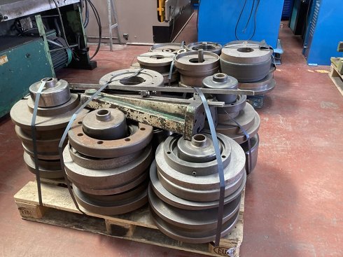 Limitador de par, montado sobre el eje central para proteger de eventuales sobrecargas accidentales en la fase de curvado y autoadecuar las diferentes velocidades periféricas de los rodillos durante el curvado de perfiles de gran sección.