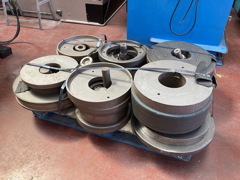 Rodillos curvadores en acero con alto contenido de cromo y con tratamiento térmico anti-desgaste.