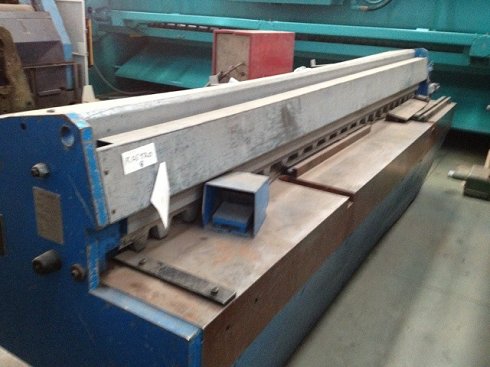 | Detalles | Cizalla de corte rápido Ajial Beyeler con licencia Edwards de 3000x3,5mm La cizalla de corte rápido Ajial Beyeler con licencia Edwads es una de las mejores máquinas que se han fabricado para conseguir cortes muy precisos y limpios en materiales ligeros (hasta 5mm de espesor máximo).Características técnicas: Longitud de corte: 3.070mm Espesor de corte: 3,5mm Ángulo de corte de cuchilla: 1 1/2º Golpes por minuto: 50 Potencia motor: 12hp Tope posterior: 650mm Tope delantero: 1.000mm Largo total: 3.560mm Ancho total: 2.180mm Alto total: 1.200mm Peso: 3.500kgsOtros detalles: