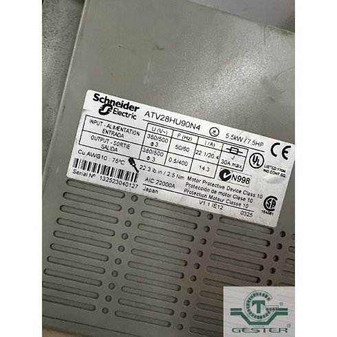 | Detalles | Variador de velocidad - Marca: Telemecanique, - Modelo: Altivar 28 ATV28HU90N4. - Para 5.5 KW (7.5 CV). |