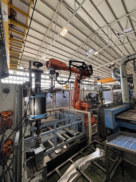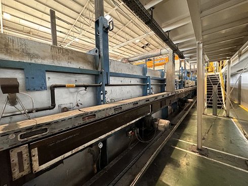 | Detalles | CONTROLS PLC SIEMENS S7 300 TIPO DE PRENSA Sistema de accionamiento: Hidráulico FUERZA Fuerza total: 800 to MESA INFERIOR Anchura de la superficie de sujeción: 2000 mm Profundidad de la superficie de sujeción: 2000 mm Altura de la mesa respecto del suelo: 700 mm CARRO Anchura de la superficie de sujeción: 2000 mm Profundidad de la superficie de sujeción: 2000 mm Carrera: 900 mm CARRO Velocidad de aproximación: 400 mm/s Velocidad de trabajo mín.: 5 mm/s Velocidad de trabajo máx.: 160 mm/s Velocidad de retroceso máx.: 300 mm/s DIMENSIONES DE TRABAJO Altura de cierre (carrera máx. y regulación arriba): 1700 mm Paso entre montantes frontal: 2100 mm DATOS DE CONEXIÓN ELÉCTRICOS Consumo de energía eléctrica (total): 370 kW Tensión de conexión: 400 V Frecuencia de la red: 50 Hz DIMENSIONES / PESO Peso total aprox.: 81000 kg ACCESORIOS/ANEXOS (PRENSAS) Automatismo de prensa: Sí Sistema transfer: Sí acc. to actual accident protection regulation: Sí Certificado CE: Sí Complete hot forming line (sheet metal application)consisting of: * Hydraulic press LOIRE SAFE 800 to. * Schwartz GA1534 furnace system: - max. lining width: 1.500 mm - Inner furnace length: 20.000 mm - Inner height: 100 mm - max. temperature: 1000 °C * Feeder * ABB unloading and loading robot |