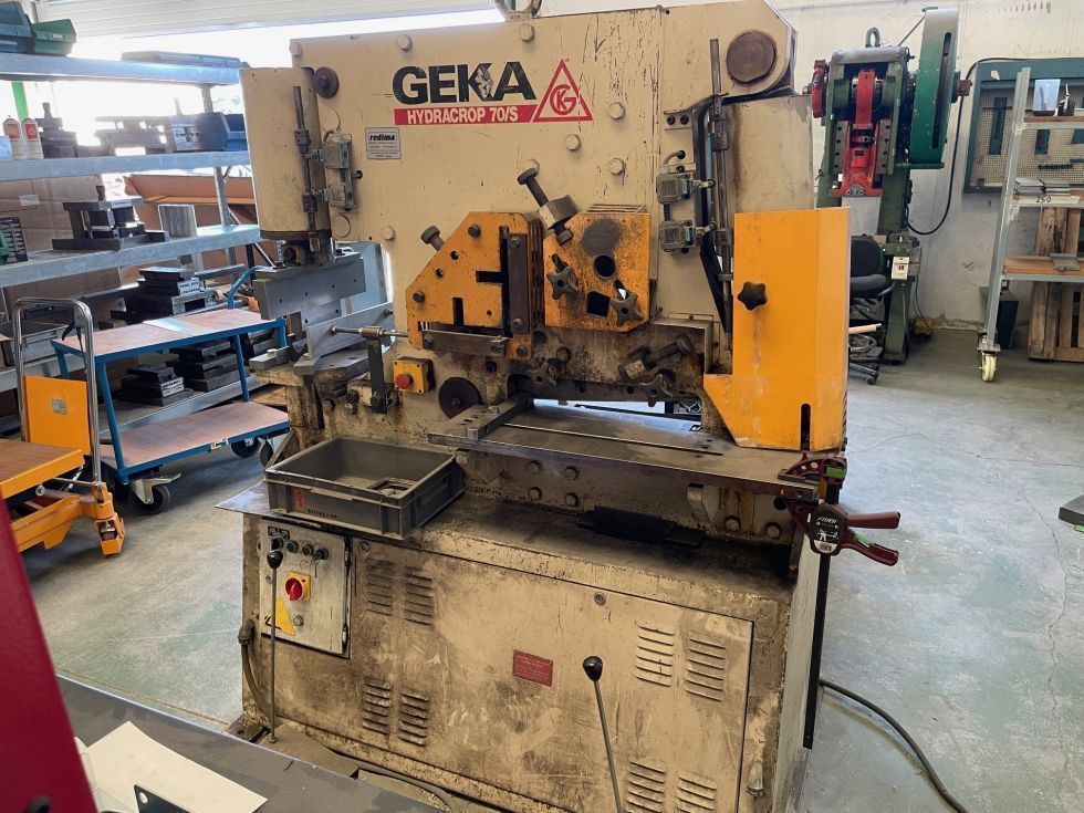 | Detalles | Punzonadora hidraulica Geka Hydracrop 70s, se puede utilizar como cizalla, recortes, escotes, pequeña plegadora, punzonadora, 2 puestos de trabajo, fuerza de 70 tm, el utillaje de punzonado no esta al completo, falta alguna pieza, se puede ver y comprobar el funcionamiento sin compromiso. |