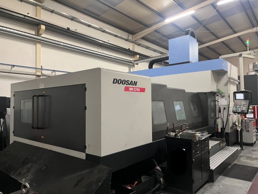 Centro de mecanizado de doble columna DOOSAN Modelo BM 2740 Año 2015 CNC FANUC Recorrido eje X 4.000 mm Recorrido eje Y 2.700 mm Recorrido eje Z 800 mm Velocidad del husillo 10000 rpm Numero de herramientas 40 / BT50