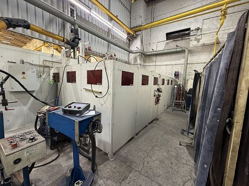 | Detalles | Robot welding cell incl. positioner Hydraulic 3D welding table ABB max. workpiece weight 2 tons and max. diameter 1400 mm Robot IRB 4600 M2004 Welding torch system Wire Select 2.0-Vers.LSQ5/Q80 with 2-fold wire feed Thielmann gas nozzle cleaning device Protective housing with door for robot welding cell |
