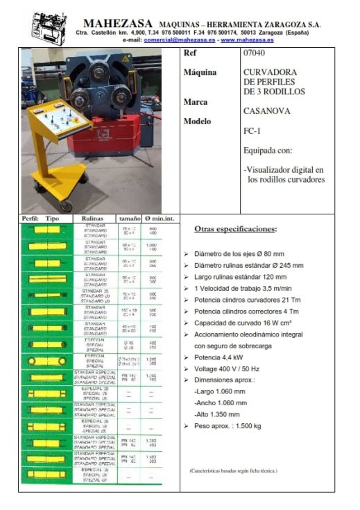 | Clasificación | Curvadoras de perfiles y pletinas |