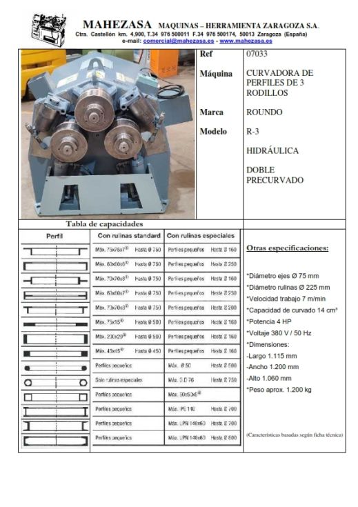 | Clasificación | Curvadoras de perfiles y pletinas |