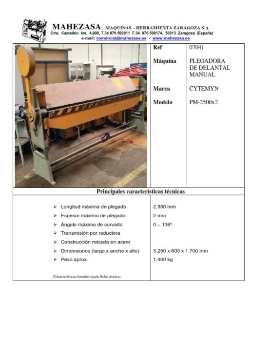 | Detalles | Longitud de plegado 2.550 mm espesor de plegado 2 mm |