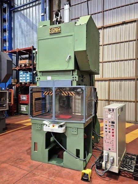 | Detalles | TIPO DE PRENSA Sistema de accionamiento: Excéntrica / Cigüeñal FUERZA Fuerza total: 125 to Energía nominal: 1250 kNm MESA INFERIOR Anchura de la superficie de sujeción: 1230 mm Profundidad de la superficie de sujeción: 710 mm Grosor de superficie de sujeción: 110 mm Agujero mesa (ancho): 350 mm Agujero mesa (profundidad): 280 mm CARRO Anchura de la superficie de sujeción: 750 mm Profundidad de la superficie de sujeción: 500 mm Agujero porta matrices: 50 mm Carrera: 150 mm N° golpes / minuto máx.: 55 /min CARRO (PRENSA MECÁNICA) Regulación del carro: 100 mm Carrera mín.: 12 mm Carrera máx.: 150 mm N° golpes / minuto máx.: 55 /min Potencia motor principal: 1.1 kW DIMENSIONES DE TRABAJO Altura de cierre (carrera máx. y regulación arriba): 450 mm DATOS DE CONEXIÓN ELÉCTRICOS Consumo de energía eléctrica (total): 11 kW DIMENSIONES / PESO espacio requerido -izquierdo/derecha-: 1210 mm espacio requerido -delante/atrás-: 1665 mm Altura total: 3574 mm Peso total aprox.: 10500 kg Situada en Barcelona - España |