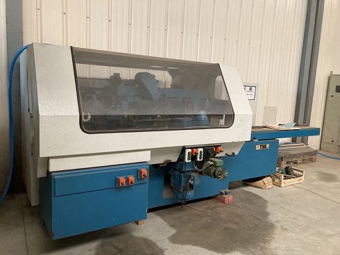 | Detalles | Technical characteristics 5 shafts moulderCapacity : 220 x 160 mmFeeding speed up to 30 m/min2500 mm infeed tableShort wood pressAir-cushion tableDouble-bearing horizontal shaftsMotorized height and width adjustment Composition :Lower planer (4 kW)Right-hand spindle moulder (4 kW)Left-hand spindle moulder (4 kW)Upper planer (5.5 kW)Universal spindle (5.5 kW)50 mm bore shafts Power and Motors Voltage: 400 VPluging: Three-phasedPower: 26 Kw Overall dimensions |