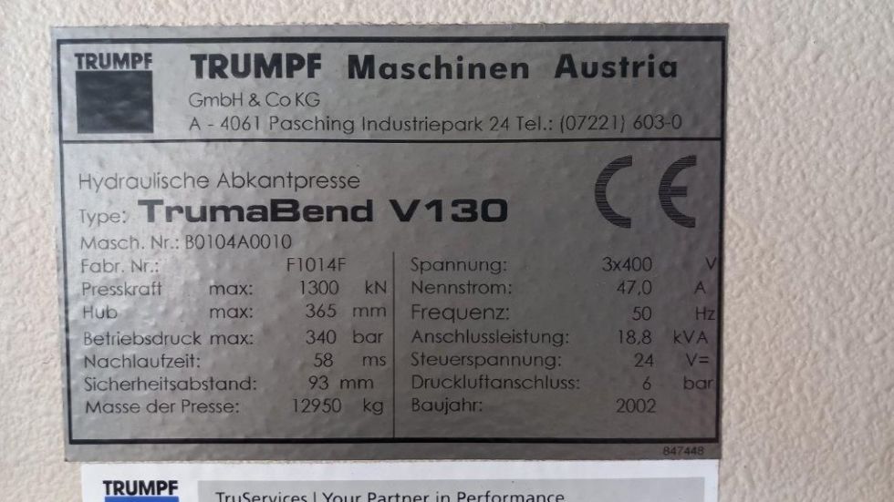 | Nombre | Pressbrake TRUMPF - TrumaBend V130 MACH-ID 9073 Make: TRUMPF Type: TrumaBend V130 Control: Delem DA6 |