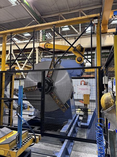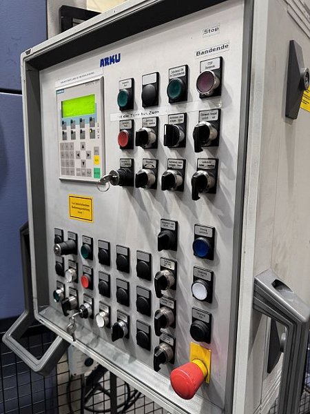 | Detalles | CONTROLS PLC ESPECIFICACIONES GENERALES (LINEA) Ancho de banda máx.: 500 mm Espesor max.: 4 mm Peso máx. de bobina: 10.5 to Dirección de alimentación: right to left CARGADOR DE BOBINAS Peso máx. de bobina: 10.5 to Carrera: 750 mm DEVANADORA Tipo: Simple Ancho de banda máx.: 500 mm Ancho de banda mín.: 150 mm Peso máx. de bobina: 10.5 to Diámetro exterior máx. de bobina: 2020 mm Diámetro interior mín. de bobina: 470 mm Diámetro interior máx. de bobina: 530 mm Velocidad de alimentación máx.: 20 m/min CROP SHEAR Espesor max.: 4 mm working width max.: 530 mm N° golpes / minuto máx.: 20 /min UNIDAD APLANADORA Ancho de banda máx.: 500 mm Ancho de banda mín.: 150 mm Espesor max.: 4 mm Espesor mín. de fleje: 2 mm Número de rollos aplanadores: 9 Diámetro rodillos aplanadores: 56 mm Diámetro rodillos alimentadores: 150 mm Velocidad de alimentación máx.: 20 m/min DATOS DE CONEXIÓN ELÉCTRICOS Consumo de energía eléctrica (total): 30 kW Tensión de conexión: 400 V Frecuencia de la red: 50 Hz DIMENSIONES / PESO Peso total aprox.: 17000 kg Coil line consisting of: - Coil loading chair HUBTEX - ARKU single-sided decoiler - ARKU RM 5050/9 feed straightening machine, +- 0.1 mm feeding precision - measuring wheel to verify feed length - Cut-to-length shear Huttenlocher & Schäfer KSK/S year of construction 2017 |