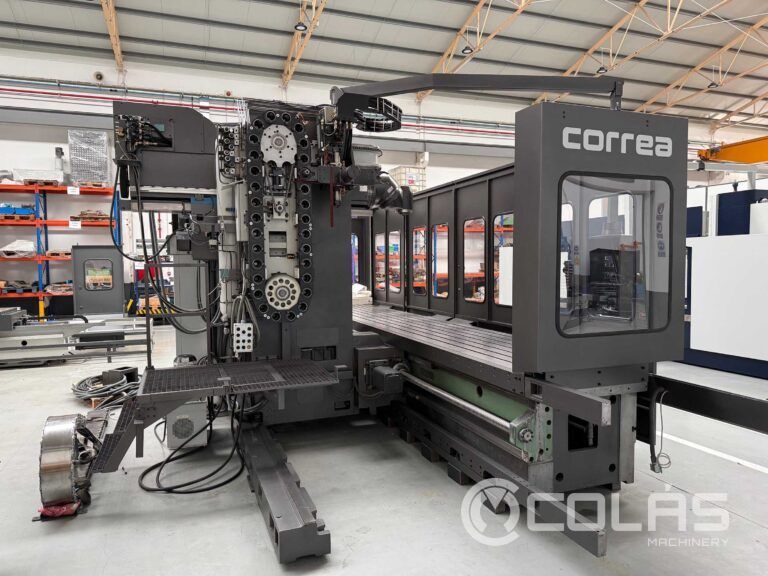 Año 1998 CNC HEIDENHAIN TNC 426 PB Superficie de la mesa 6.120 x 1.000 mm Peso Admisible sobre mesa 20.000 Kg. Recorridos (X/Y/Z)) 4.300 mm Avance Rápido Ejes 12.000 mm/min Avance Máximo de Trabajo 5.000 mm/min Cabezal de Giro Automático 2. 5º – 2. 5º Cono Cabezal ISO-50 Potencia Motor Principal 30 kW Gama de Revoluciones 20 – 3.000 r.p.m. Cargador Automático Herramientas INCLUIDO Posiciones en cargador de htas. 40 Equipo de Taladrina con sistema de filtrado de papel INCLUIDO Volante electrónico portátil HEIDENHAIN HR-410 Peso de la Máquina 28.000 Kg. |