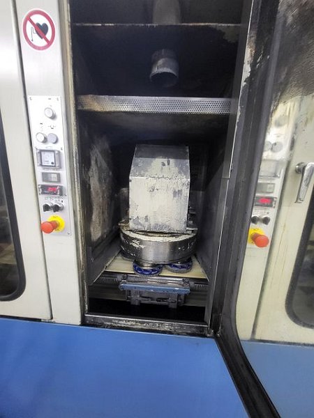 | Detalles | CONTROLS Control CNC SIEMENS S7 300 SPECIFICATIONS THROUGH FEED GRINDING MACHINE Working width: 330 mm number of brushing station: 3 Desmagnetizadora: Sí CINTA TRANSPORTADORA Velocidad mín.: 1.4 m/min Velocidad máx.: 14 m/min Desmagnetizadora: Sí Unidad de refrigerante: Sí DATOS DE CONEXIÓN ELÉCTRICOS Consumo de energía eléctrica (total): 7 kW DIMENSIONES / PESO espacio requerido -izquierdo/derecha-: 4510 mm espacio requerido -delante/atrás-: 1806 mm Altura total: 2320 mm Peso total aprox.: 5500 kg Equipment: 3 brushing units: each with 5 satellites (3.2 kW per unit) -Head rotation: 80-200 rpm -Brush rotation: 800-3000 rpm 1 spray and blow-off system 1 conveyor belt: both belt and sanding belt possible 4 magnetic plates Special feature: Demagnetization and blow-off station at the belt outlet |