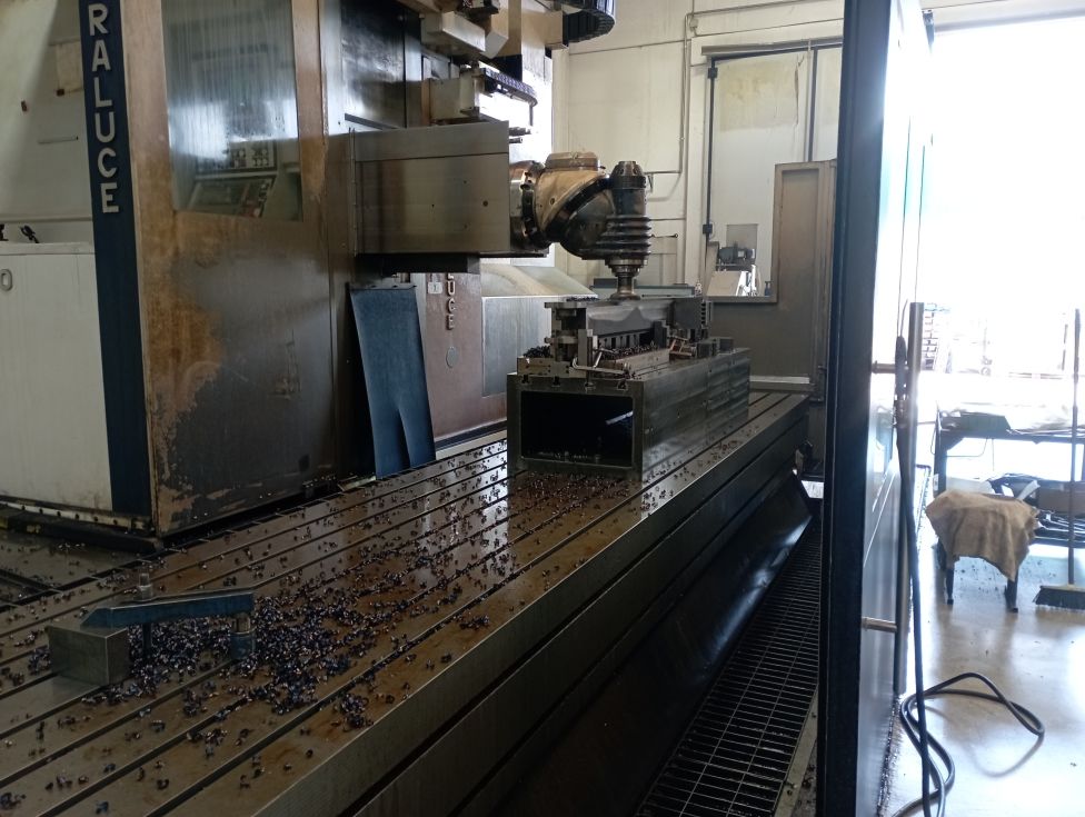 | Detalles | Fresadora de columna movil SORALUCE Modelo FL 9000 Año 2007 CNC Heindenhain TNC 530 Dimensiones de la mesa : 9000 x 1100 mm Recorrido en eje X : 8500 mm Recorrido en eje Y : 1000 mm Recorrido en eje Z : 1400 mm Husillo principal : 15-5000 rpm / ISO 50 Avances rápidos : 25 m/min Motor del husillo : 28 Kw Cambiador de herramientas automático (posición vertical y horizontal) 40 |