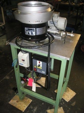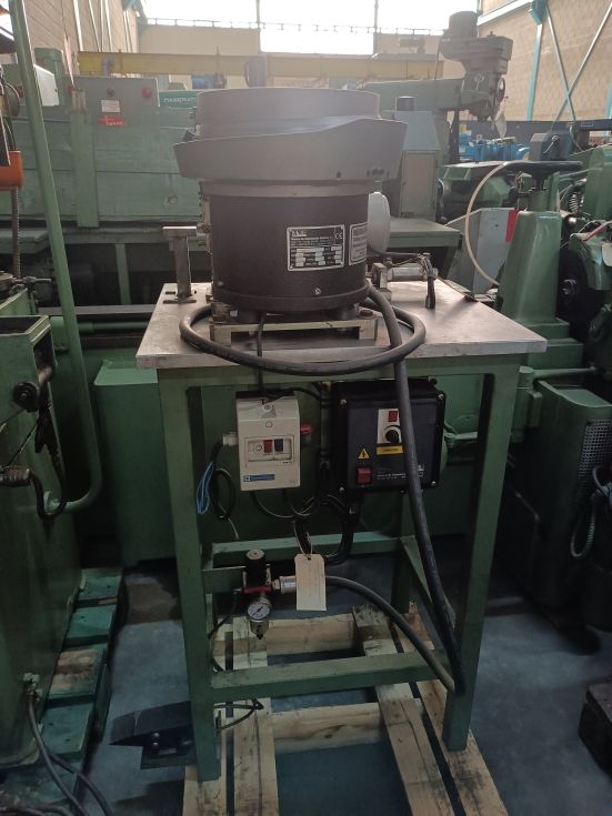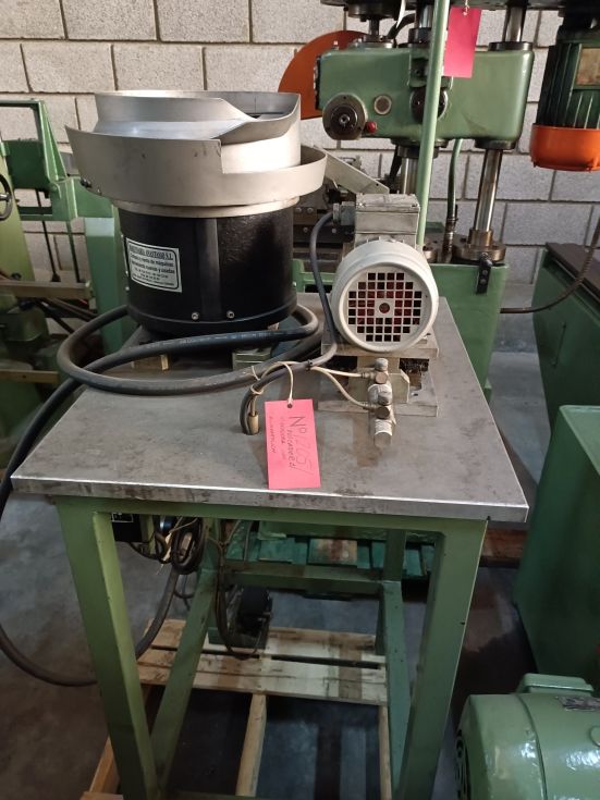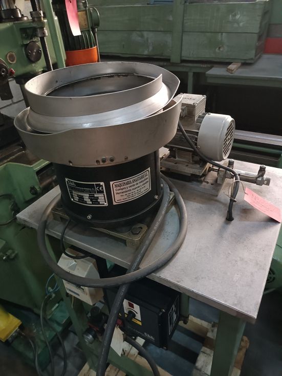 ALIMENTADOR por vibración T.D.A. de Ø250, activación del enroscado por pedal neumático, preparado para roscar tuercas de rosca M-10x100, motor apriete 0.18kw a 380 V, motor de vibro a 220 V. COMO NUEVA.