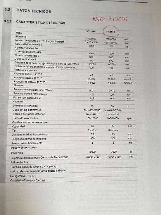 | Modelo | VT 1750 ,con cnc Fagor modelo 8055 |