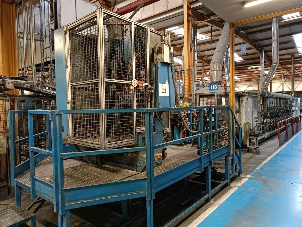 | Detalles | SUBASTA ONLINE los días 24 y 25 de Septiembre !!! Lote 11 LÍNEA SINTERIZADO. Compuesta por: - Prensa de compactación mecánica automática 50 tn de alto rendimiento DORST mod TPA 50/3. Año 1996. - Báscula comprobación METTLER-TOLEDO GARVENS mod XS 2. Capacidad 300 g. PLC táctil. - Horno de paso continuo 1120 ºC con cinta transportadora MAHLER mod DLM/GG 600/100/1500-7000. Año 2007. Ancho cinta transportadora 600 mm. Altura útil sobre cinta 100 mm. Longitud útil horno, calentado: zona quemado estearato 1500 mm, zona sinterizado 7000 mm. Capacidad máx de paso 550 kg/h. Campo Tª trabajo: zona quemado estearato 700 - 900 ºC, zona sinterizado 1120 - 1150 ºC. - Enfriamiento. **A posterior, hay 2 opciones, pasar a la calibradora directamtente, o pasar por otro horno antes de llegar a la calibradora. - Prensa Calibradora 400 tn LAUFFER mod RPT 400. Año 2003. Fuerza máx retroceso 45 tn. Recorrido máx 320 mm. Altura de montaje 2300 mm. - Célula Taladros Roscadores ERLO mod BTBV-35/2/C. Año 2003. - Horno de tratamiento 600 ºC de vapor continuo SARNES mod CONTIBLU 800. Año 2010. - Robots transfer varios FANUC. Longitud total de la línea al completo 32,5 m aprox, según montaje/distribución actual. - Toda la información e instrucciones de COMO PARTICIPAR Pacelma: Subasta STADLER - LÍNEAS SINTERIZACIÓN, PULVIMETALURGIA y MECANIZADO |