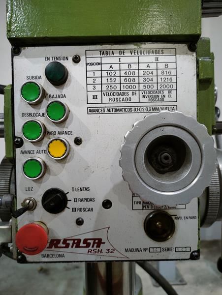 | Detalles | Taladro radial rápido,. Mesa fija de 1200 x 530mm, capacidad de taladrado en acero: 25mm, capacidad de taladrado en fundición: 32mm, capacidad de roscado en acero: M24, capacidad de roscado en fundición: M30, Columna giratoria: 360º , carrera hidráulica de columna: 410 mm, carrera de husillo: 150 mm, número de velocidades: 12 (de 102 a 2000 rpm) |