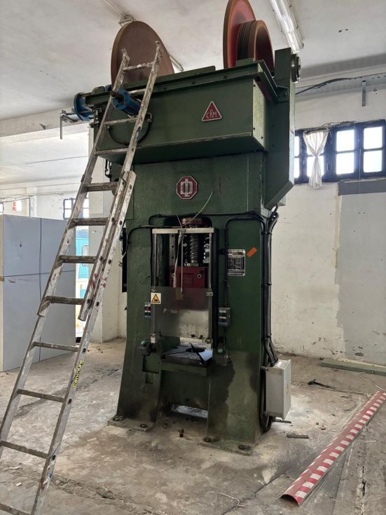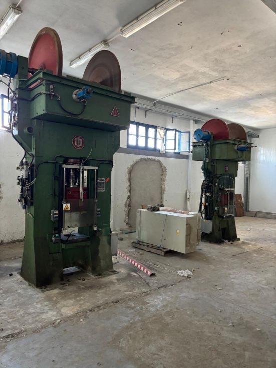 Marca: DELLAVIA Modelo: Brindisi Diámetro del husillo: 180 mm Presión máxima admisible: 550 toneladas Luz entre los montantes bajo las guías: 460 mm Luz entre los montantes dentro de las guías: 350 mm Carrera del martillo: 340 mm Dimensiones de la mesa: 430 x 550 mm Distancia de la mesa bajo las guías: 445 mm Dimensiones totales: 2590 x 1890 x 3710 mm (alto) Potencia requerida: 20 kW Peso aproximado: 9 toneladas