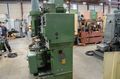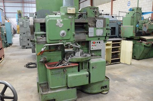 DetallesAlto: 1100 mm Peso: 5.000 Kg Ancho: 2300 mm Largo: 1800 mm Módulo: 5 Voltaje: 220/380V Ø mesa: 310 mm Potencia total: 3 Kw Ø del husillo: 78 mm Nº fabricación: 9317 Ø máx. a tallar: 500 mm Velocidad de corte: 18 Longitud máxima a tallar: 75 mm Ø del agujero de la mesa: 125 mm Ø máx. a tallar exterior: 500 mm Ø máx. a tallar interior: 450 mm Nº de golpes / minuto del cortador: 45 / 424 Guia recta, plato de 3 garras, ruedas de cambio Adjuntos