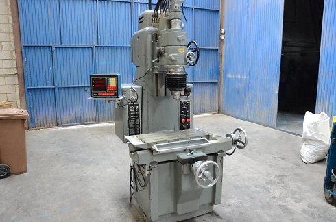 DetallesAlto: 2500 mm Peso: 1815 Kg. Ancho: 1651 mm Largo: 2000 mm Dimensiones: 279,4 x 609,6 mm Nº fabricación: G 191 Carrera transversal: 279,4 mm Carrera longitudinal: 457 mm Excentricidad husillo: min 3 / max 76 mm Velocidad del husillo: De 40 a 250 r.p.m. Distancia mesa mandril: min 25,4 / max 457 mm Distancia husillo a columna: 254 mm Divisor vertical, Mesa de senos, Visualizador FAGOR, Cabezales de rectificar, Galgas y escuadras / Vertical Divider, Table breasts, display FAGOR, grinding heads, gauges and brackets