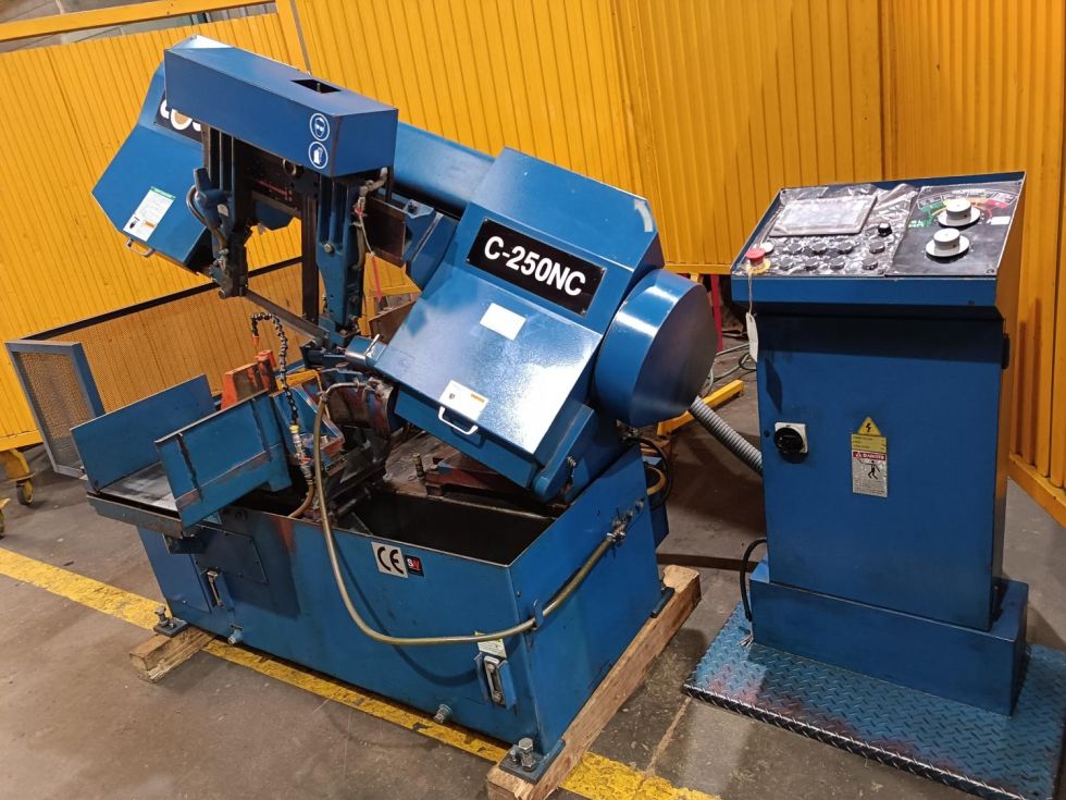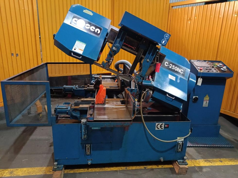 | Detalles | Sierra de cinta automática de alta producción. Marca: COSEN Mod. C-250 NC. Motor: 3 Hp + 1 Hp + 1/8 Hp (cinta + hidráulico + lubricación) Accesorios: con extractor de virutas, guias de cinta de widia, con 10 hojas de siera de repuesto nuevas, alimentación automatica de hasta 403 mm y multialimentación, con pantalla tactil de 7”, velocidad de corte de 13 a 100 m / min. con variador de frecuencia. . en muy buen estado. con manual de instrucciones y sello CE. |