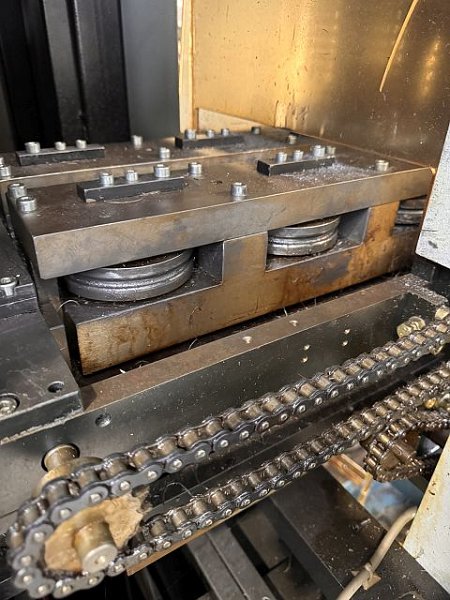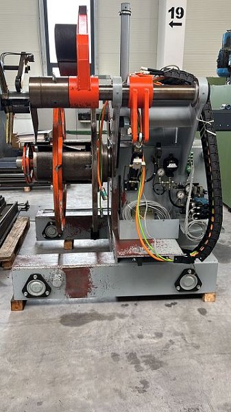 | Detalles | CONTROLS PLC SIEMENS S5 115U ESPECIFICACIONES GENERALES (LINEA) Ancho de banda máx.: 140 mm Espesor max.: 6 mm Peso máx. de bobina: 3 to CARGADOR DE BOBINAS Peso máx. de bobina: 3 to Carrera: 500 mm DEVANADORA Tipo: Simple Ancho de banda máx.: 300 mm Peso máx. de bobina: 3 to Diámetro exterior máx. de bobina: 1300 mm Diámetro interior mín. de bobina: 360 mm Diámetro interior máx. de bobina: 430 mm UNIDAD APLANADORA Ancho de banda máx.: 140 mm Espesor max.: 6 mm Espesor mín. de fleje: 3 mm Número de rollos aplanadores: 21 Diámetro rodillos aplanadores: 50 mm Velocidad de alimentación máx.: 43 m/min DATOS DE CONEXIÓN ELÉCTRICOS Consumo de energía eléctrica (total): 35 kW KOHLER coil line consisting of: - Coil loading chair CS3000 - Decoiler 300.1 H - VSRM 50.140/21 leveller - HK 140 upright leveller |