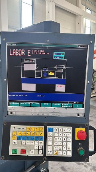 | Detalles | CONTROLS CNC Teach In Controls SIEMENS FUNCIONES BÁSICAS design principle: flatbed Número de cabezales: 1 ZONA DE TRABAJO Diámetro de giro (máx.): 720 mm Diámetro de torneado (máx.): 380 mm Diámetro de la barra (máx.): 108 mm Longitud de la pieza máx.: 1500 mm MAIN SPINDLE Gama de velocidades de: 0 /min Gama de velocidades a: 1200 /min Número de escalones de engranaje: 3 spindle bore diameter: 108 mm X/Z SLIDE Avance z a: 5000 mm/min Avance x a: 5000 mm/min Marcha rápida Z: 5000 mm/min Marcha rápida x: 5000 mm/min Portaherramientas: Steel Holder TAILSTOCK distance betw. centers (max): 1500 mm Carrera de la pinola: 200 mm sleeve diameter: 120 mm taper: MK 6 DATOS DE CONEXIÓN ELÉCTRICOS Tensión de conexión: 400 V Frecuencia de la red: 50 Hz DIMENSIONES / PESO espacio requerido -izquierdo/derecha-: 4050 mm espacio requerido -delante/atrás-: 1730 mm Altura total: 2050 mm Peso total aprox.: 5500 kg ACCESORIOS (TORNO) tailstock: Sí steadies (number): 1 |