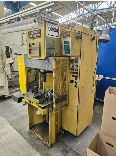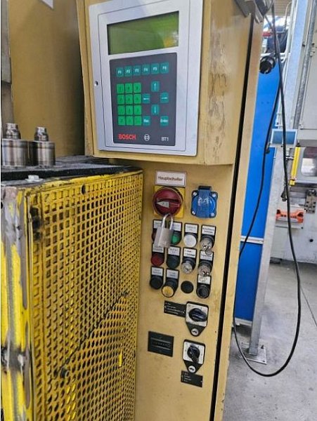 | Detalles | TIPO DE PRENSA Sistema de accionamiento: Hidráulico Tipo de bastidor: Forma "C", único FUERZA Fuerza total: 12 to CARRO Carrera: 200 mm DATOS DE CONEXIÓN ELÉCTRICOS Tensión de conexión: 380 V Frecuencia de la red: 50 Hz DIMENSIONES / PESO Peso total aprox.: 1000 kg Hour counter: 30'181 h last safety check: 27.07.2023, overrun time 38 ms, overrun distance 60 mm |