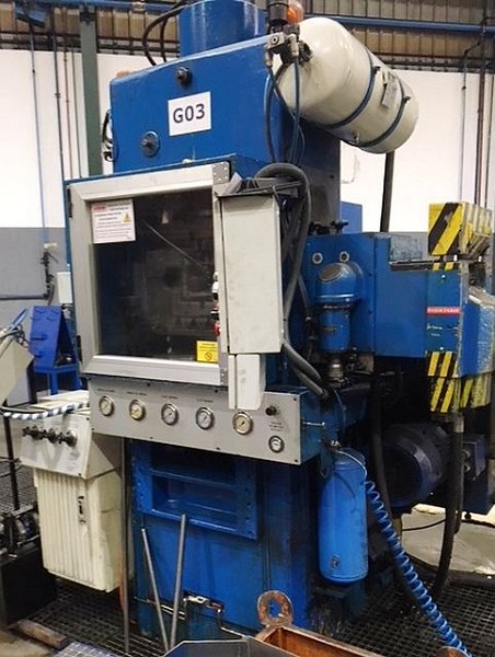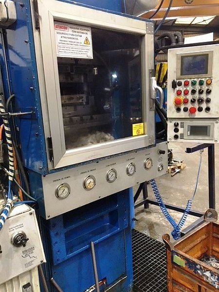 | Detalles | CONTROLS PLC OMRON TIPO DE PRENSA Sistema de accionamiento: Rodillera Tipo de bastidor: Forma "H" Monobloc Dirección de alimentación: Izquierda a derecha SLIDE Fuerza total: 160 to Carrera: 60 mm N° golpes / minuto máx.: 72 /min CONTRAPRESIÓN Fuerza nominal: 40 to Carrera: 14 mm V-RING Fuerza nominal: 50 to Carrera: 13 mm DIMENSIONES HERRAMIENTA Altura de cierre máx.: 277 mm Ajuste del carro: 80 mm ALIMENTADOR Tipo de alimentador: Rodillos Ancho de banda máx.: 210 mm Espesor max.: 6 mm Fuerza nominal: 6 kN Rueda de medición: No Lubrificador de banda: Opcional Rulinas de soporte de banda: Sí DIMENSIONES / PESO espacio requerido -izquierdo/derecha-: 1940 mm espacio requerido -delante/atrás-: 1780 mm Altura total: 2855 mm Peso total aprox.: 9000 kg La prensa actualmente no puede ser inspeccionada en funcionamiento https://youtu.be/YsnzSAr56Fk Reconstrucción del sistema mecánico completo y del sistema hidráulico. Cuadro eléctrico nuevo. Servomotor en el alimentador. Todo en 2017 |