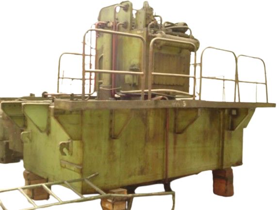 Presion: 630 Toneladas Mesa: 2,100 x 2,100 mm Distancia entre barras: 2,350 x 1,270 mm Carrera piston: 1,200 mm Piston: 20" Peso aprox: 80 Tons Año de construccion: 1990 Medidas: Ancho: 4,300 mm Largo: 1,950 mm Altura: 7,500 mm