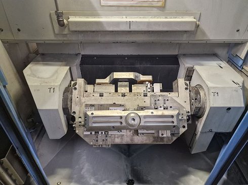 | Detalles | CONTROLS Control CNC SIEMENS 840 D ZONA DE TRABAJO -CÚBICA- número de ejes de procesamiento (sin ejes paralelos): 4 Trayecto de desplazamiento eje X: 550 mm Trayecto de desplazamiento eje Y: 320 mm Trayecto de desplazamiento Z: 360 mm MESA Anchura de la superficie de sujeción: 820 mm Peso máximo de la pieza de trabajo: 500 kg HUSILLO / CABEZAL Gama de velocidades a: 24000 /min Tomaherramientas: HSK A50 ACCIONAMIENTO DEL EJE Marcha rápida: 75000 mm/min ALMACÉN DE HERRAMIENTAS Número de posiciones de la herramienta: 24 AUTOMATIC WORKLOAD EQUIPMENT Número de posiciones el almacenador: 2 DATOS DE CONEXIÓN ELÉCTRICOS Tensión de conexión: 400 V Frecuencia de la red: 50 Hz DIMENSIONES / PESO Peso total aprox.: 7700 kg EQUIPO ADICIONAL Recubrimiento de las guías de bancada: Sí Lubricación central: Sí Transportador de virutas: Sí Unidad de refrigerante: Sí Revestimiento del área de trabajo: Sí Certificado CE: Sí - Shuttle table machine - Knoll (KSS) watertank FKA/350 (2011) - Highspeed plus package - - Renishaw probe, with a Chiron Lasercontrol System F1000 and with a workpiece support control - Peisseler AWU 160P rotary table - Loading and unloading robot, Fanuc LR 200iC (6-axis robot and palletizer) - Air extraction with filter Renishaw-Messtaster, mit einem Chiron Lasercontrol System F1000 |